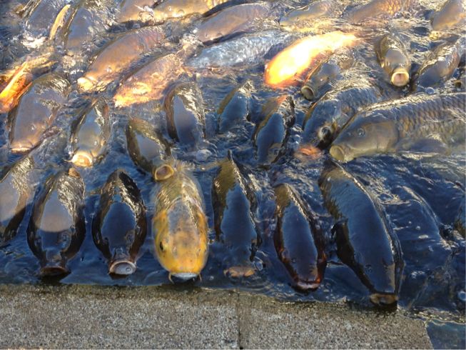 この鯉さんたち、食い意地を貼りすぎて