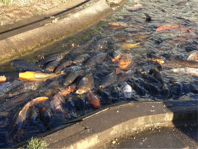 この鯉さんたち、食い意地を貼りすぎて