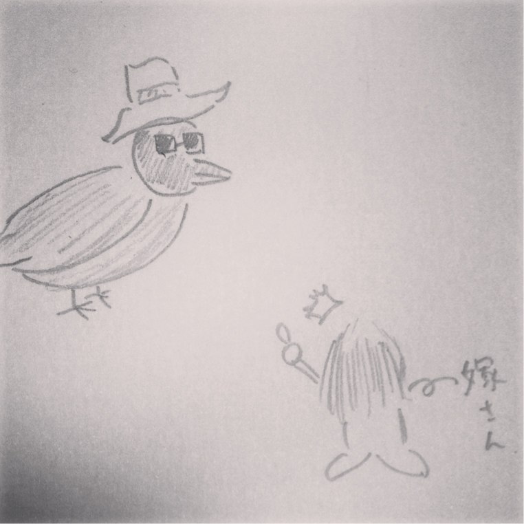 嫁さんが普通の大きさの1.5倍くらいのカラスを発見。