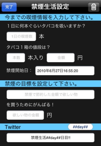 禁煙に伴い、禁煙生活というアプリを使用しようと思います。