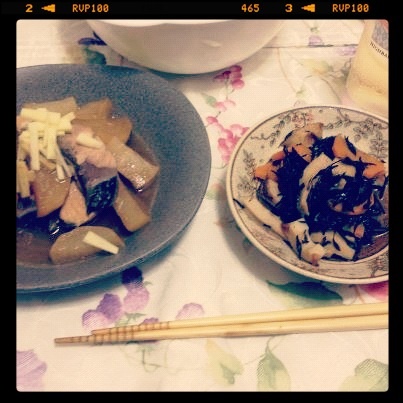 今日はブリが安かったので、ブリの煮物とひじきの煮物…