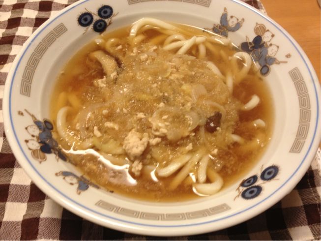 本日は嫁さんが熱を出した為、生姜うどんです!