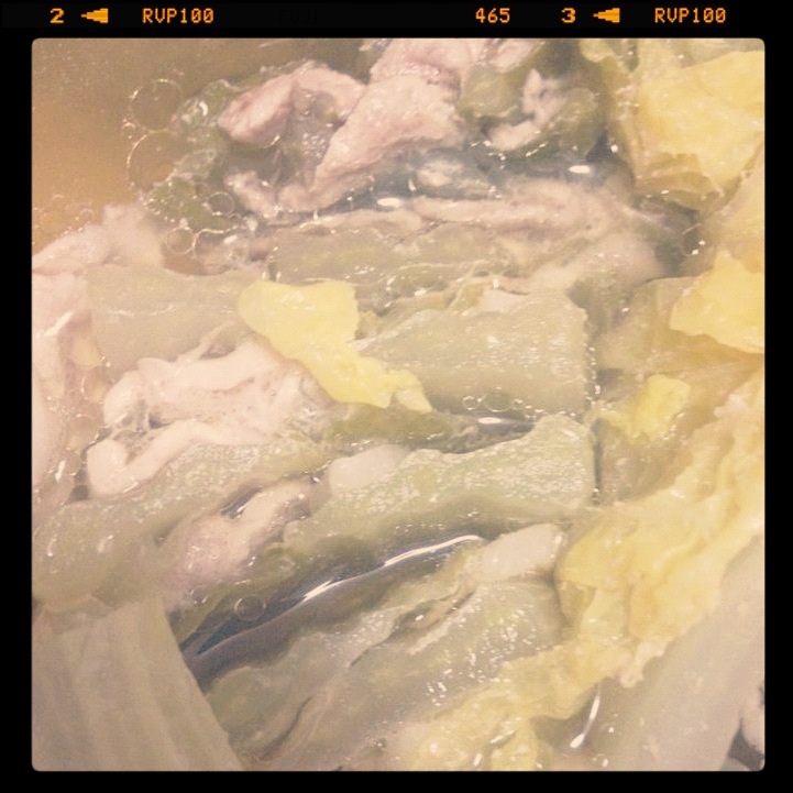 水を白菜と豚バラがちょうど隠れるくらい入れて、あとは固形コンソメ二個投入!