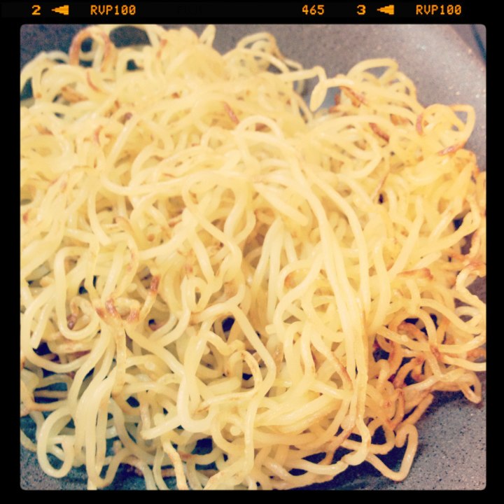 麺はテフロンフライパンに大さじ1の油を引き、