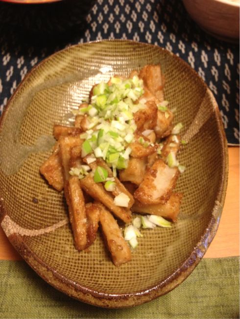 こちらは嫁さん作のれんこんの炒め物。