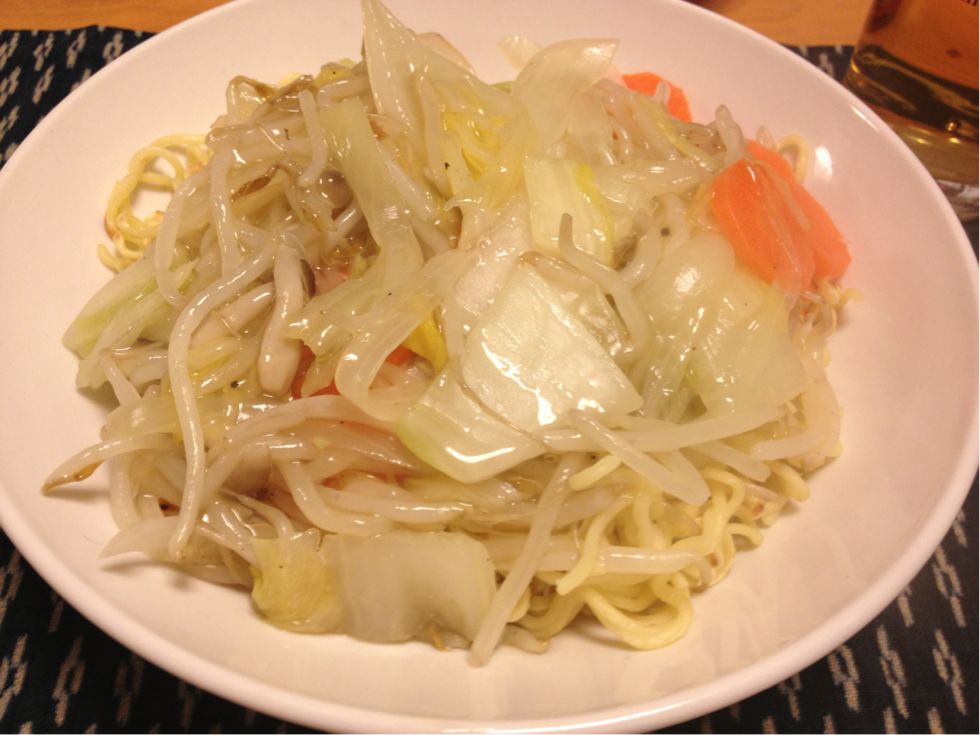 写真は油なし、肉なしの焼きそばですが、