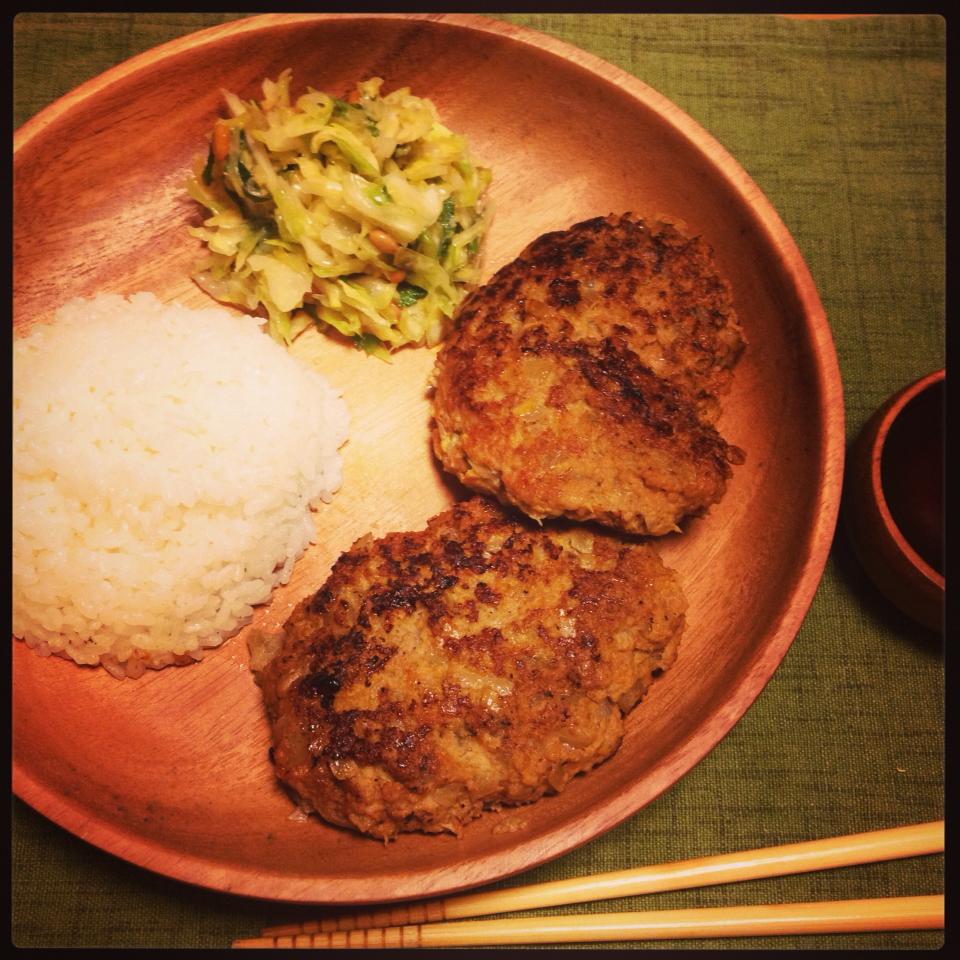 ハンバーグの付け合せはキャベツと大葉の納豆ナムル(๑≧౪≦)