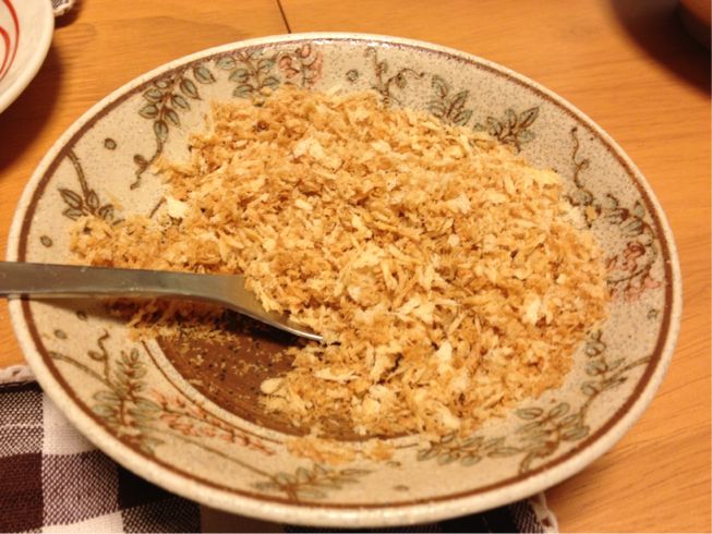 フライパンで炒ったパン粉を…