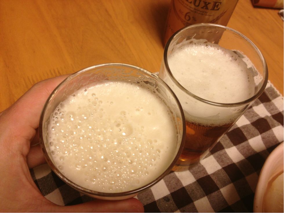 手前がよなよなエールで、奥がキリン濃い味(発泡酒)。