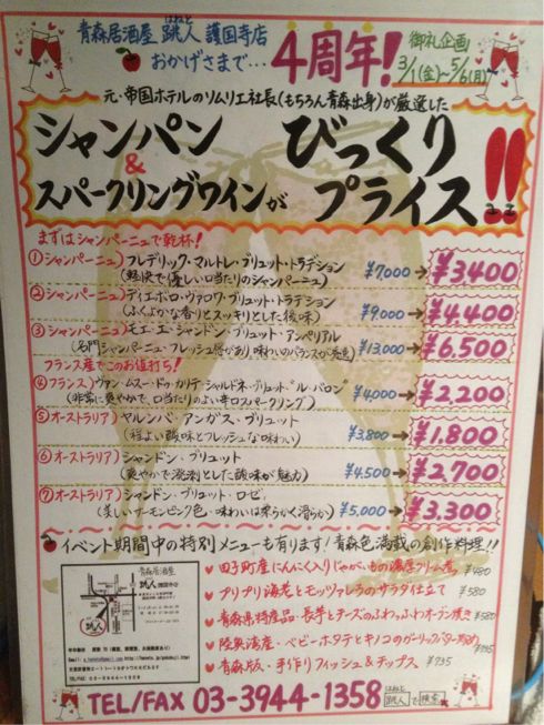 本日は跳人護国寺店の4周年のシャンパンフェアだったようなので…