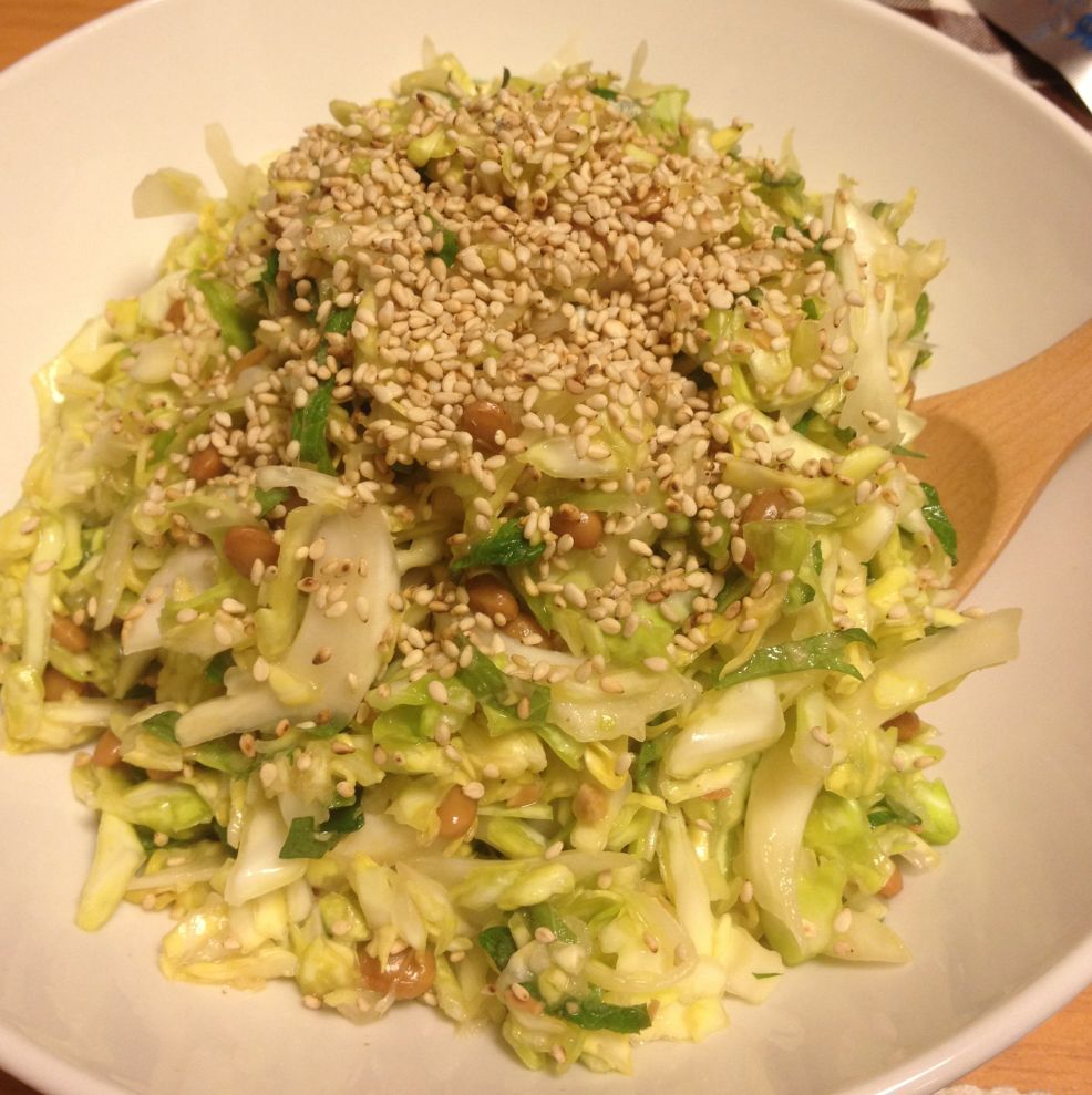本日はキャベツと大葉の納豆ナムルです。