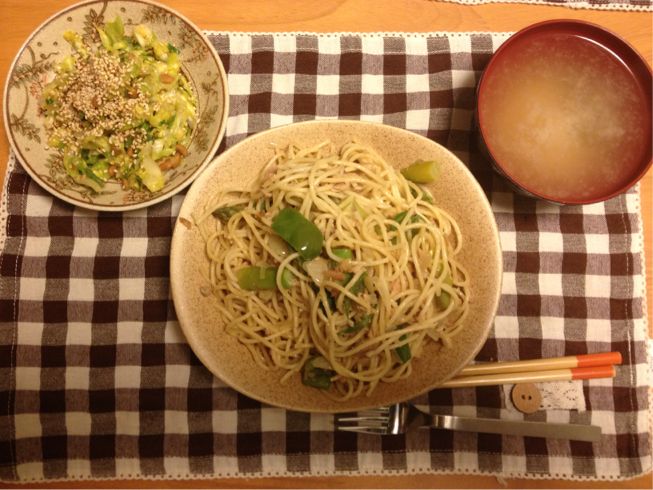 本日は久々の麺類、和風野菜パスタです!(^○^)