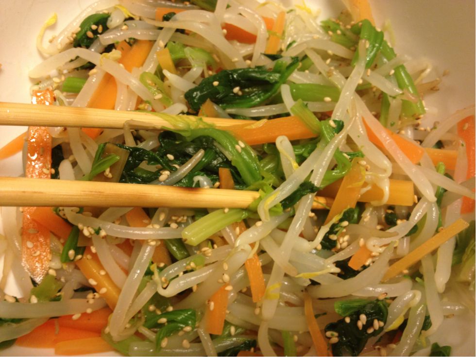 もやし、ほうれん草、人参を各々茹でて、粗熱が取れたらも
