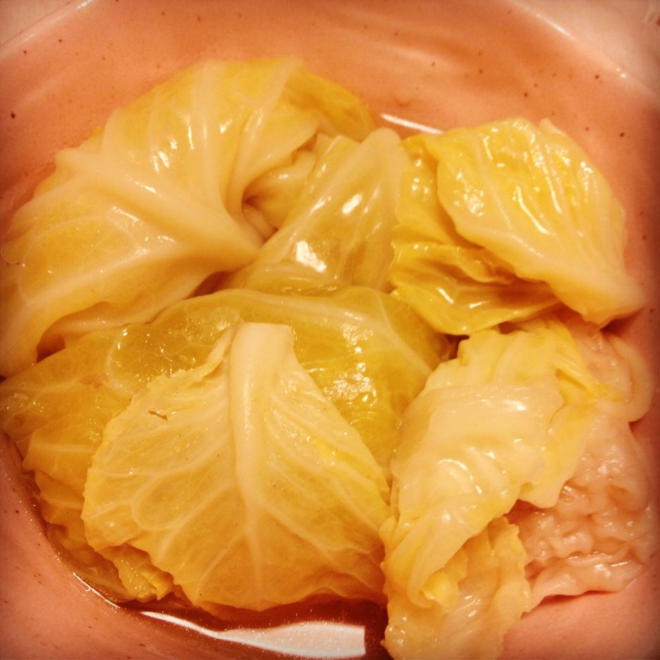 #1) キャベツをさっと茹で、柔らかくなった葉でしゅうまいを2つ巻きます。