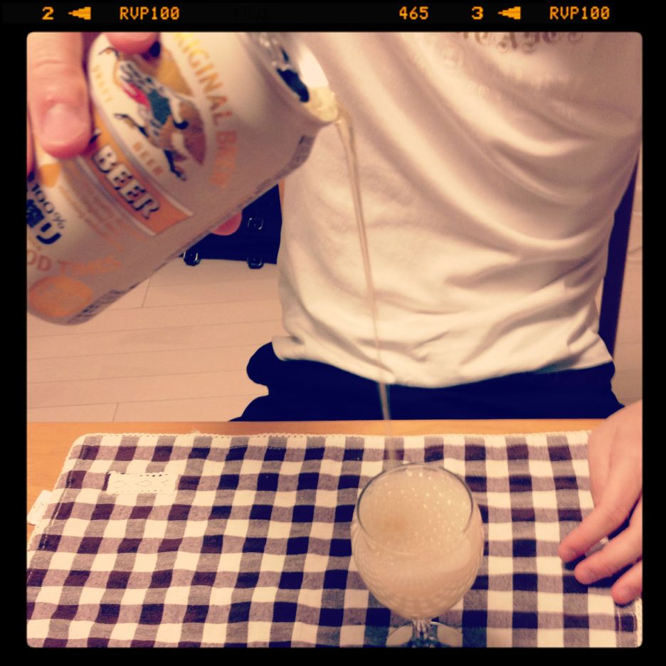 今日は日曜日なので、昼間っからビールで乾杯。