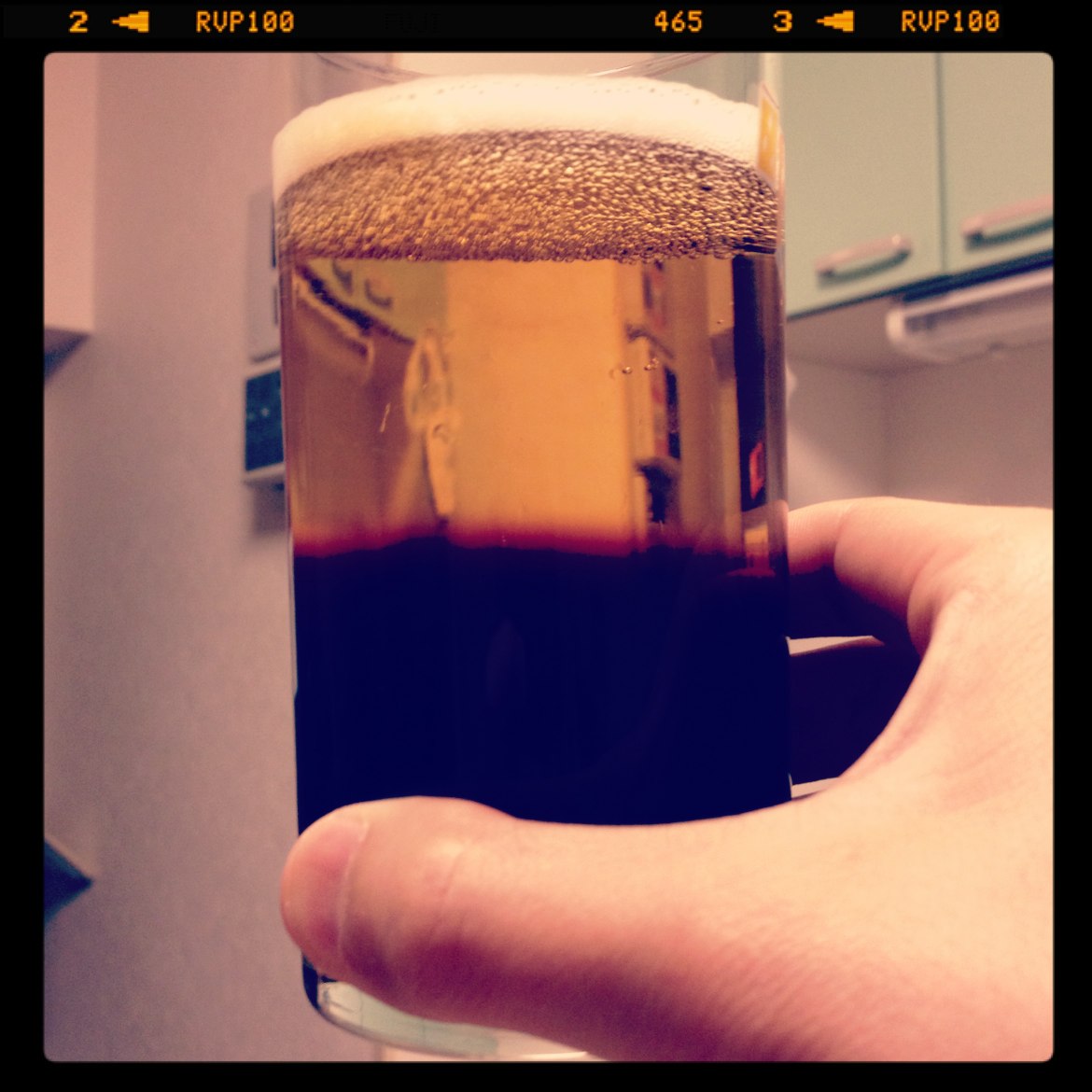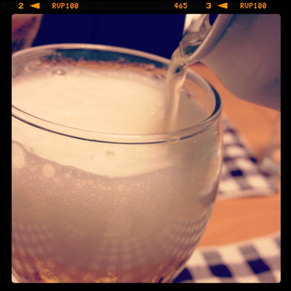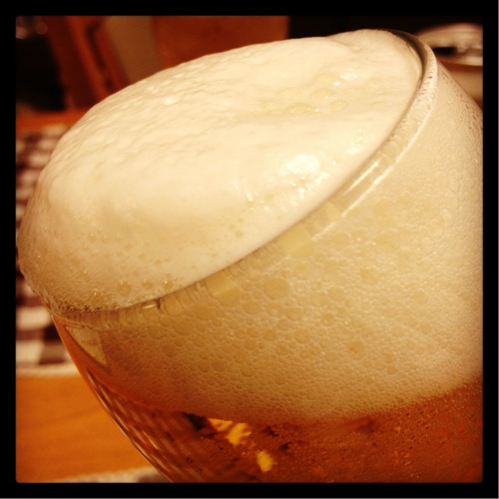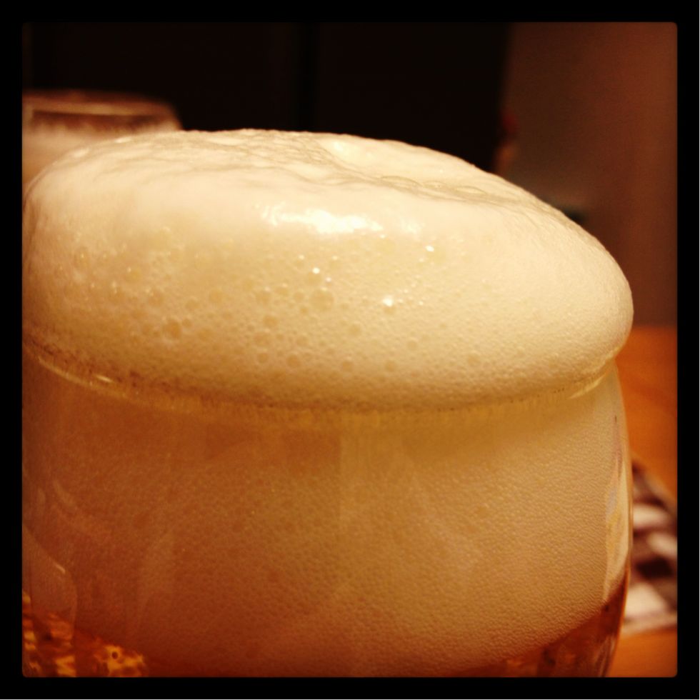 #2) しばらくするとカニ泡が下がってくるので、下がったところで2回目はグラスの上まで泡が盛り上がるまでゆっくりつぐ。ここでまたストップ!